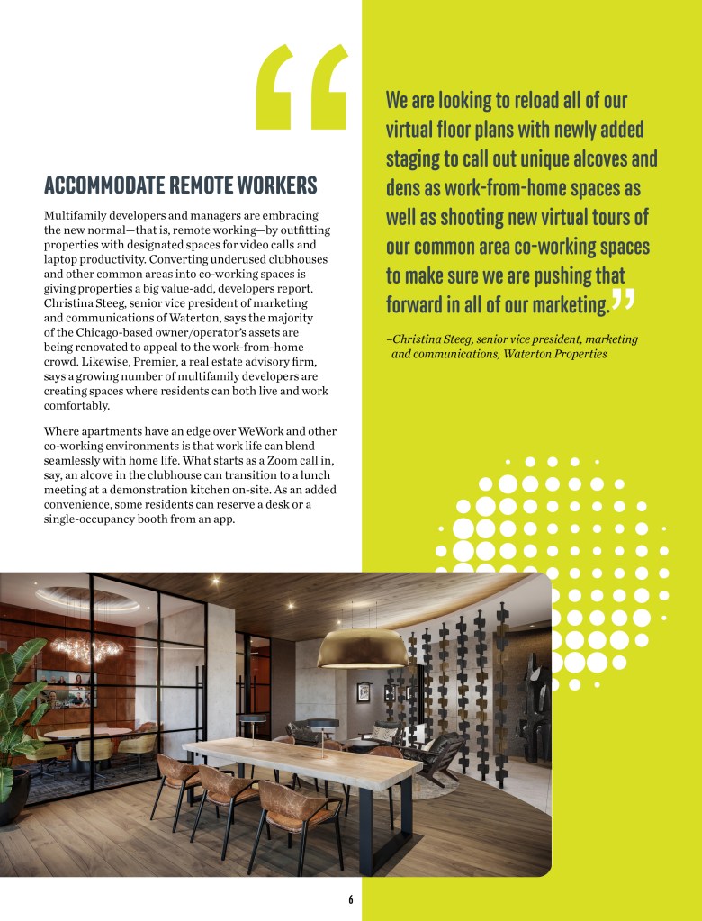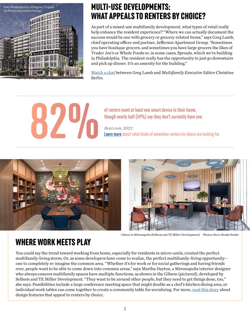 The MFE Concept Community Reports are an annual thought leadership digital publication. I used strong imagery and colors to express the dynamic amenities and culture that high-end rental buildings offer to renters. By using a playful color palette I mirrored the trendy vibes of the communical spaces.